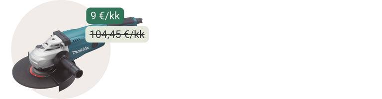 Nyt voit vuokrata koneet edulliseen hintaan, alennukset jopa 95 % normaalihintoihin verrattuna. Pitkäaikaisvuokra mahdollistaa projektien loppuunviemisen rauhassa, miettimättä kalliita koneostoja tai huoltoja. Kun projekti on ohi, palautat tuotteen. Näin varmistat, että sinulla on aina huolletut koneet ja etteivät ne jää lojumaan autotalliin tai varastoon.