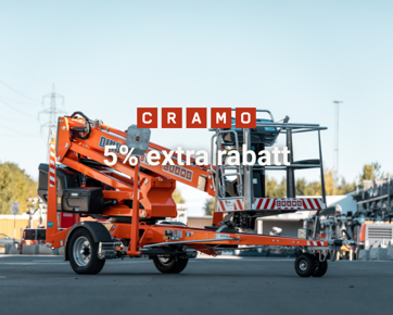 Vi firar vårt femårsjubileum tillsammans med Cramo. För att fira detta får du ytterligare 5% rabatt på bogserbara lyftanordningar utöver den normala medlemsrabatten. Kampanjerbjudandet gäller från 1 oktober till 31 december 2025.